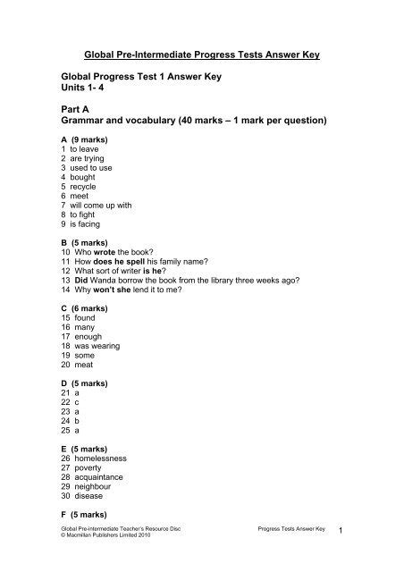 Download online GLOBAL ANSWERS KEY PROGRESS TESTS B INTERMEDIATE Epub